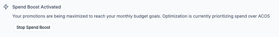 Note: ACOS targets are disabled while Spend Boost is active. The system focuses entirely on utilizing your allocated budget.